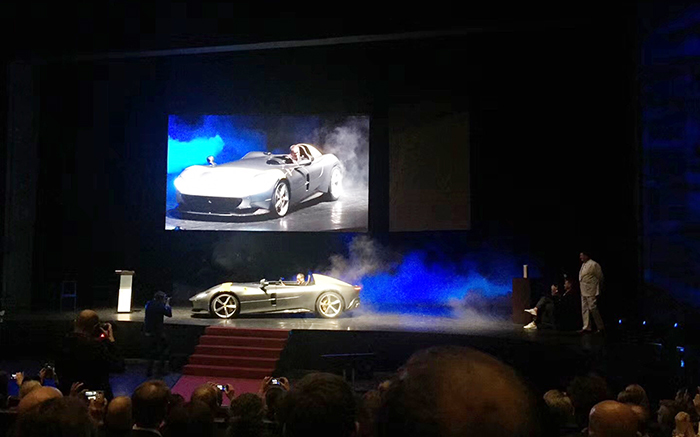 意大利法拉利獲獎(jiǎng)團(tuán)隊(duì)把跑車開上舞臺(tái)